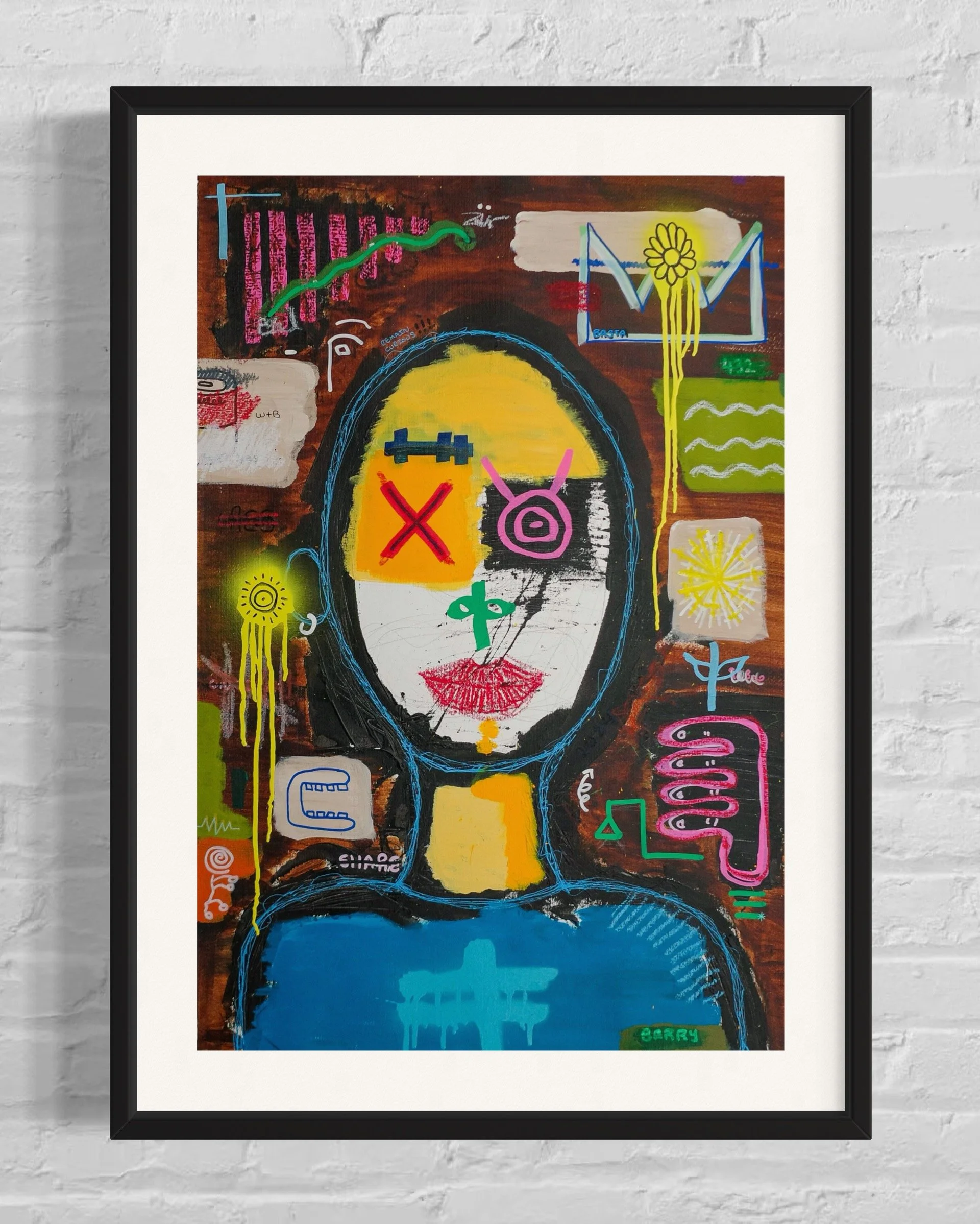 Greetings (2024) - Mixed Media on paper in black wood frame - 100 x 70 x 1.5 cm